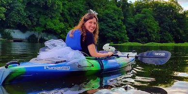 This is super fun for your bunch. You can make your rental or private tour special for your bride! We have a cute bridal tutu that goes on the kayak, a tiara, flowers for the dashboard and big white sunglasses! I'll take gobs of pictures! You just need to call me when you want to reserve.